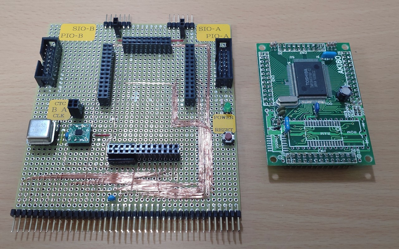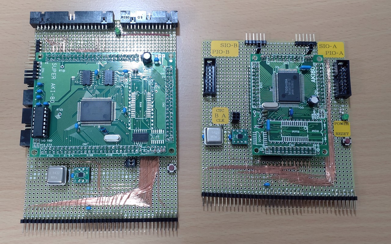 AKI-80とSuper AKI-80にメモリーなどいろいろ載せて動かしているところ。