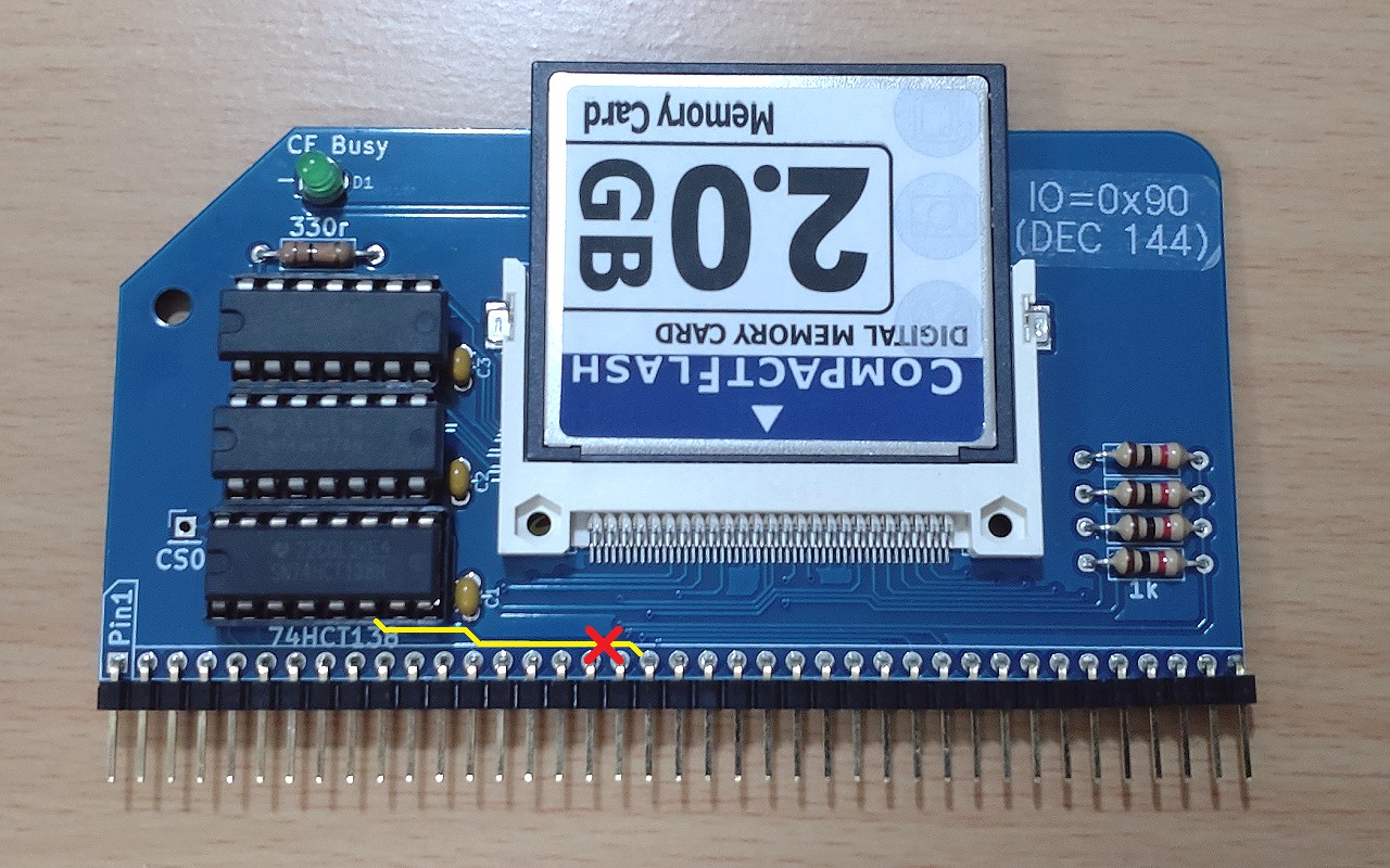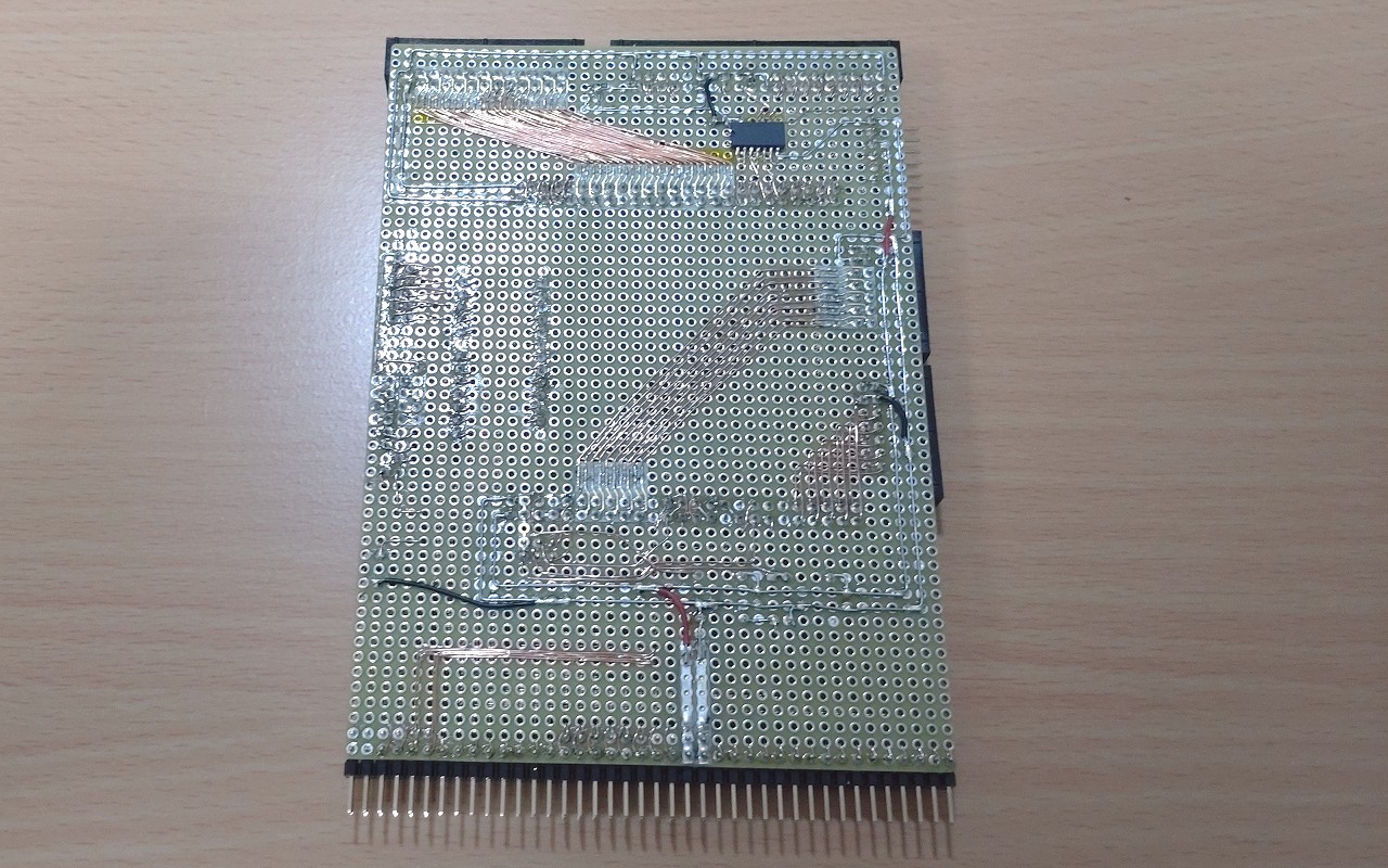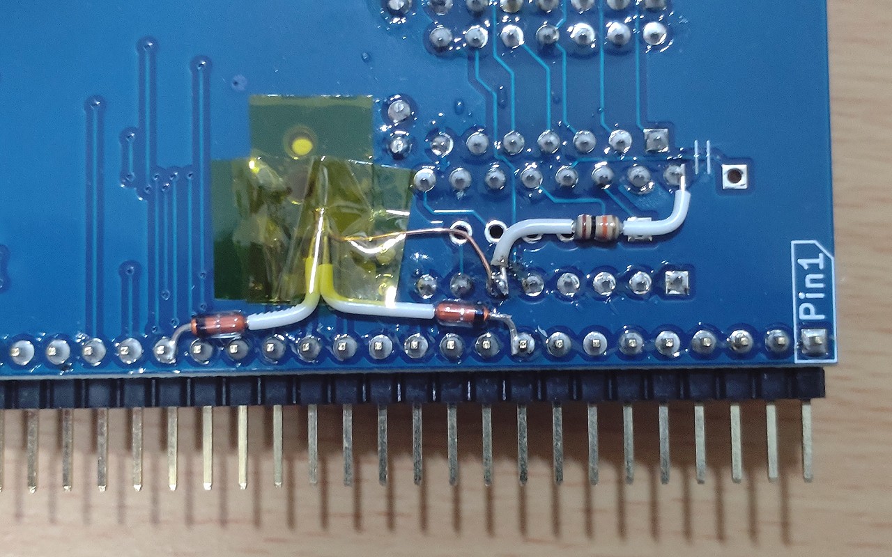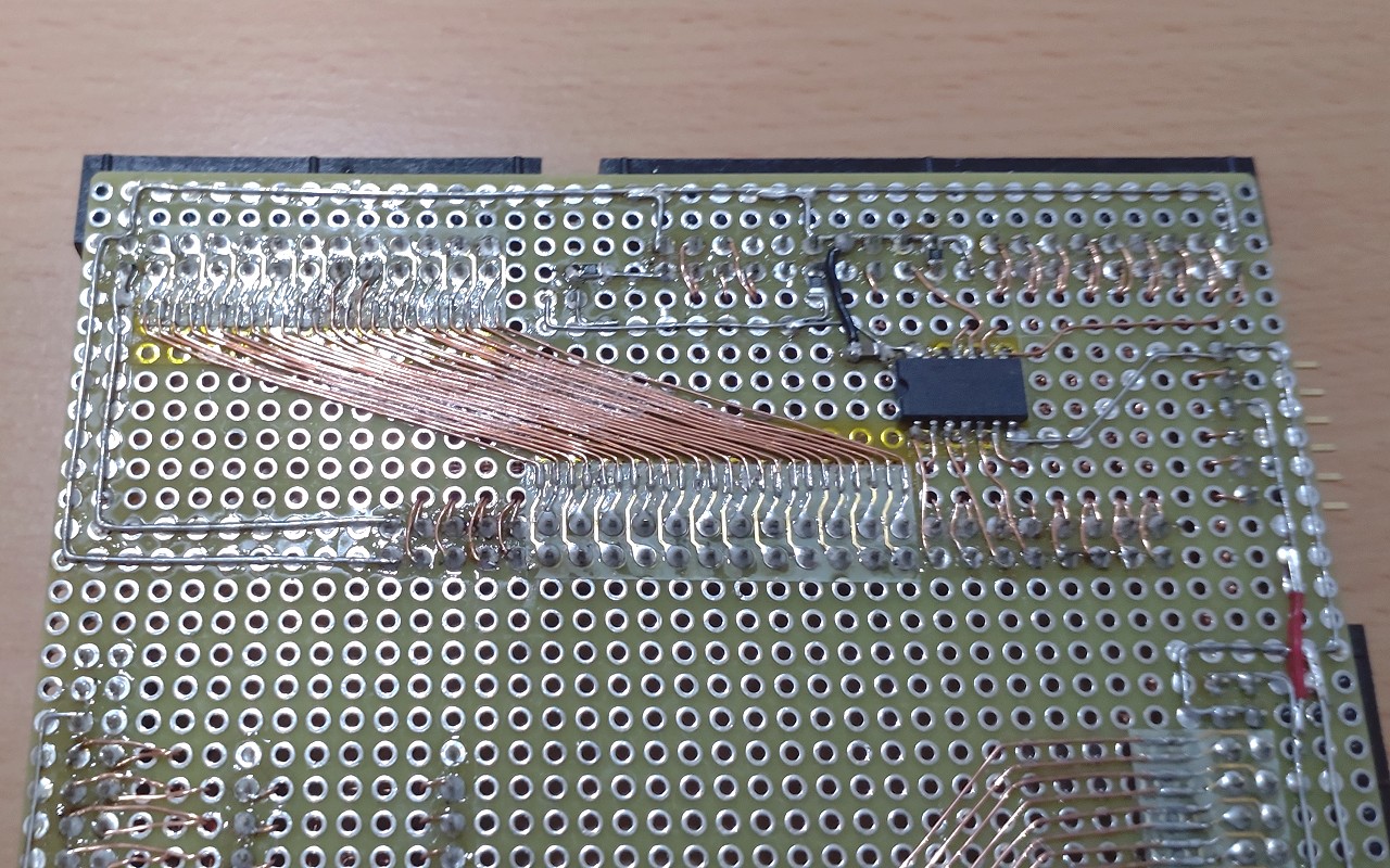 基板については、M1から74HCT138へ伸びているパターンをカットして、基板裏面にダイオードと抵抗を追加した。