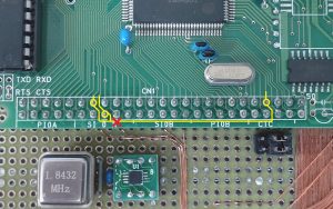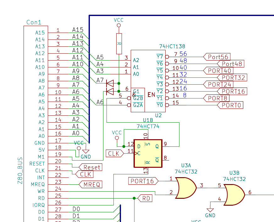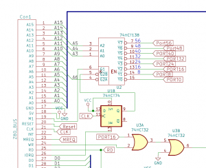 具体的には、アドレスバスのA7をM1とANDを取るようにダイオードとプルアップ抵抗を追加。