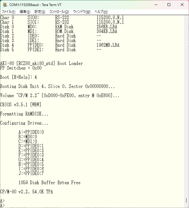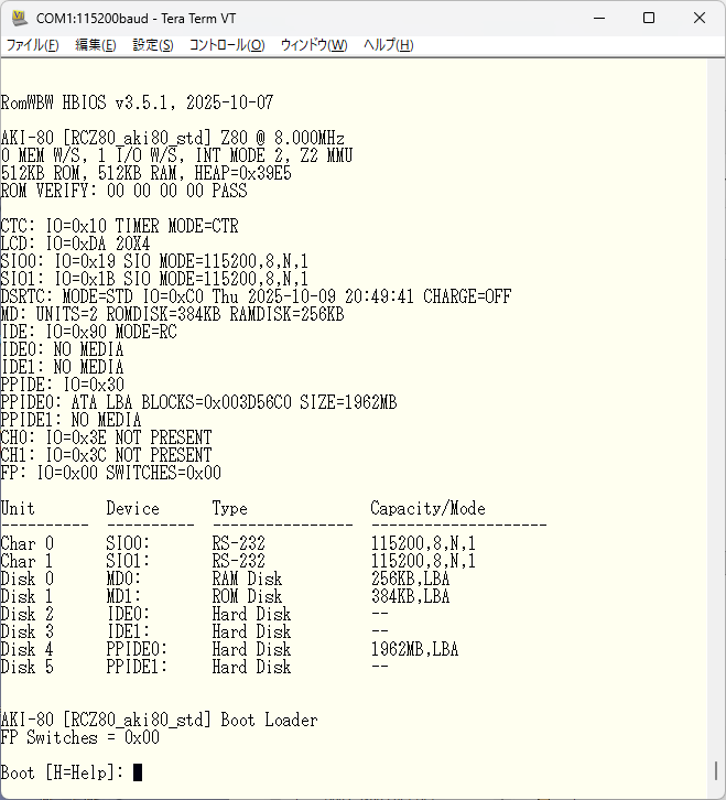 RomWBWのコンフィグファイルもSuper AKI-80に合わせて直してある。
